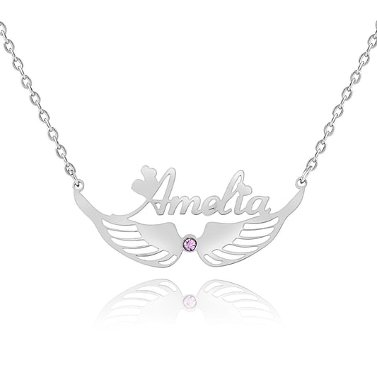 Pendentif Personnalisé Prénom et Fleur avec Pierre de Naissance