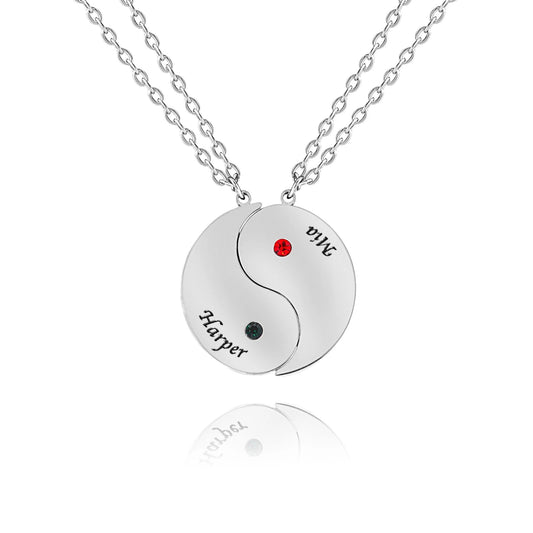 Double Pendentif Prénom Ying Yang avec Pierre de Naissance
