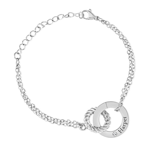 Bracelet Cercle Gravé avec Anneau Torsadé & Cristal
