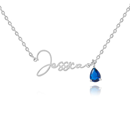Collier Prénom Vertical Personnalisé avec Pierre de Naissance