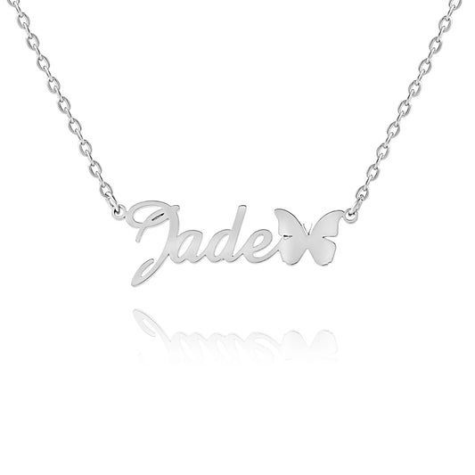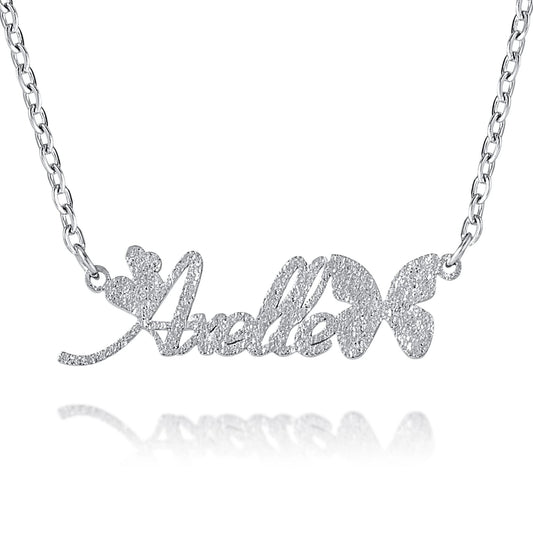 Collier Prénom Personnalisé avec Police Papillon & Effet Pailleté