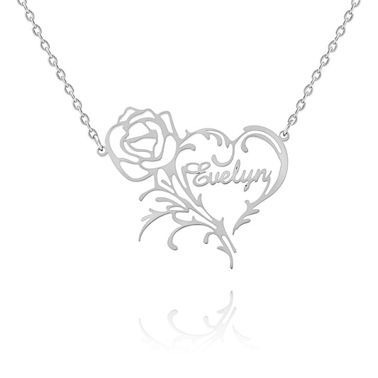 Collier Cœur avec Rose Personnalisé – Gravure Prénom
