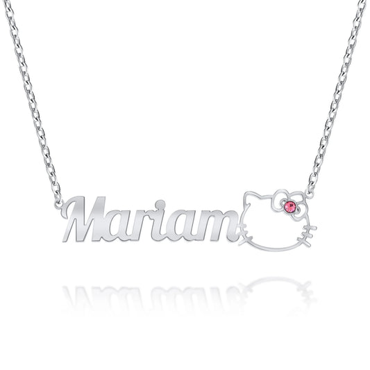 Collier Prénom Personnalisé avec Motif Chat & Pierre Scintillante
