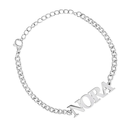 Personalized Engraved ID Bracelet with Flower & Birthstone