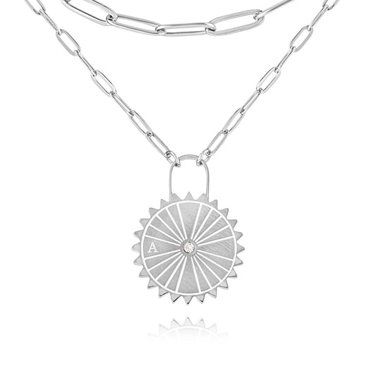 Personalized Sun Padlock Necklace with Initials & Stone