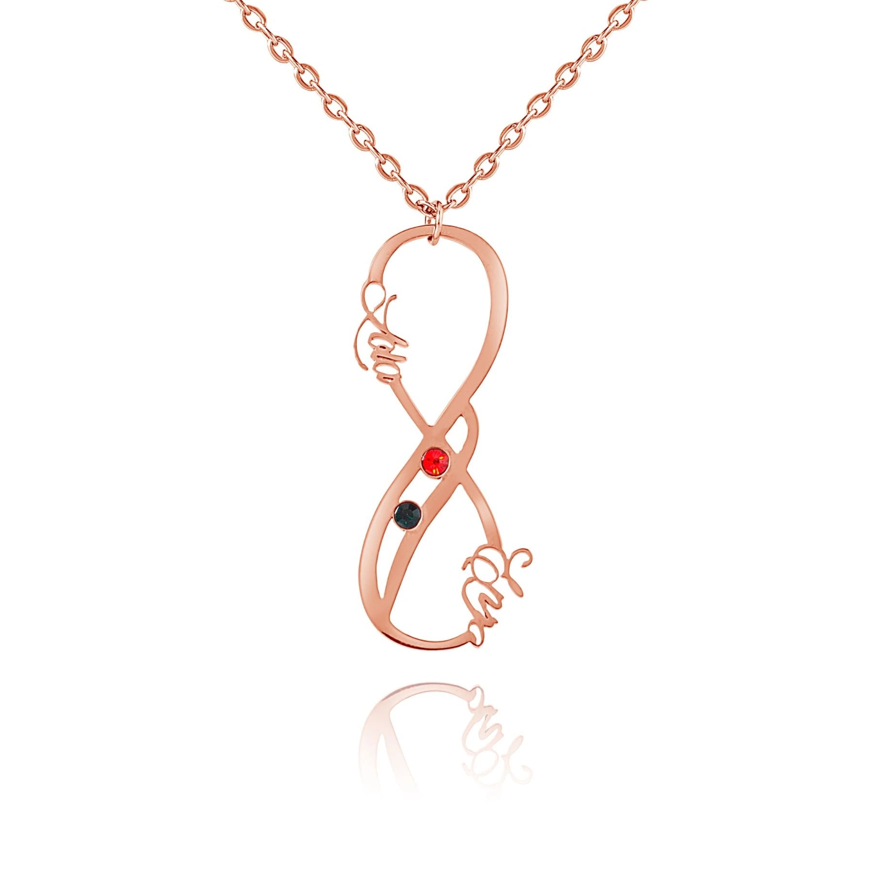 Vertical Infinity Two-Name Birthstone Necklace