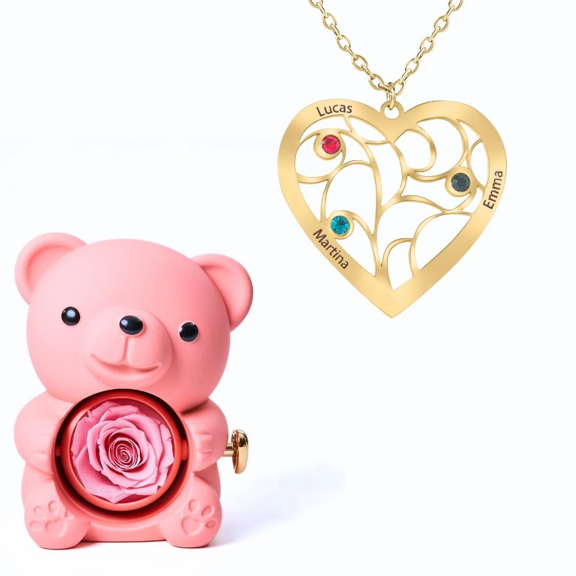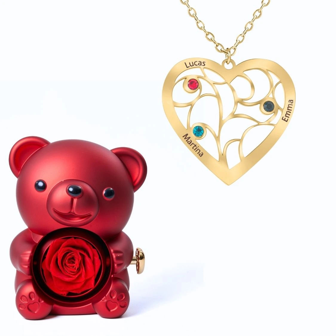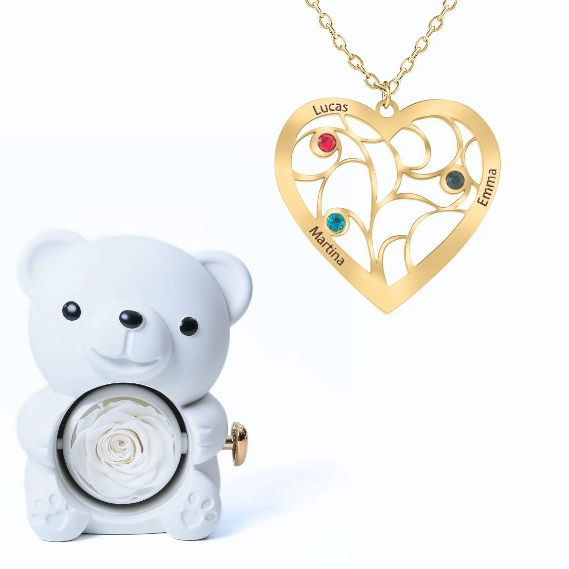 Ours Éternel & Collier Coeur et Pierre de Naissance