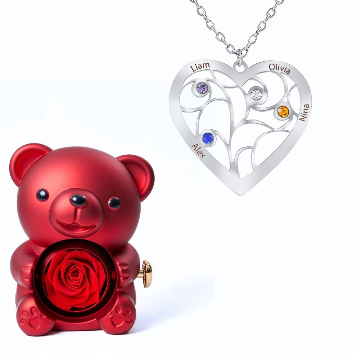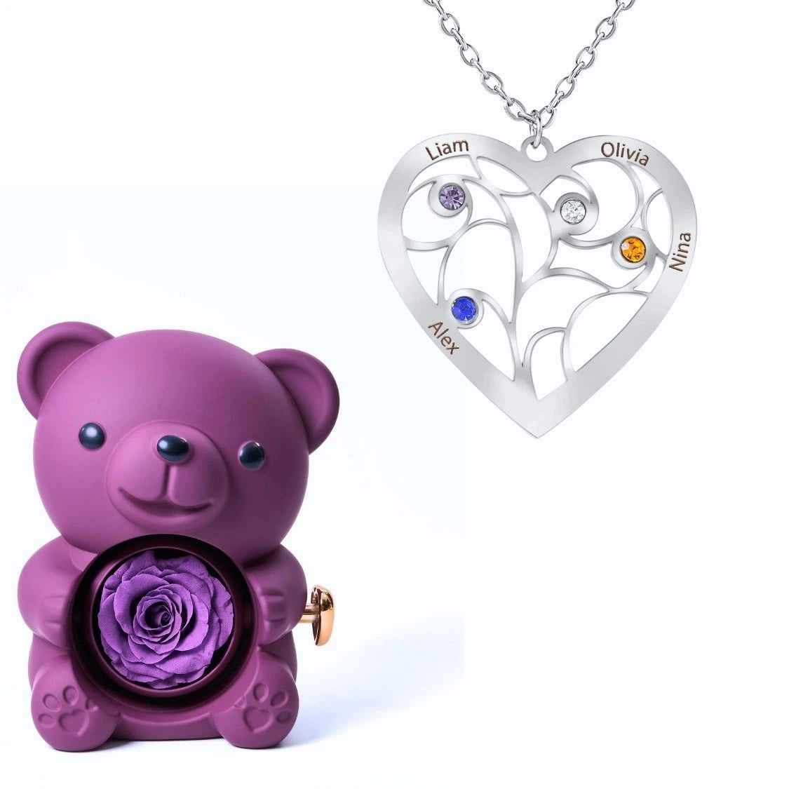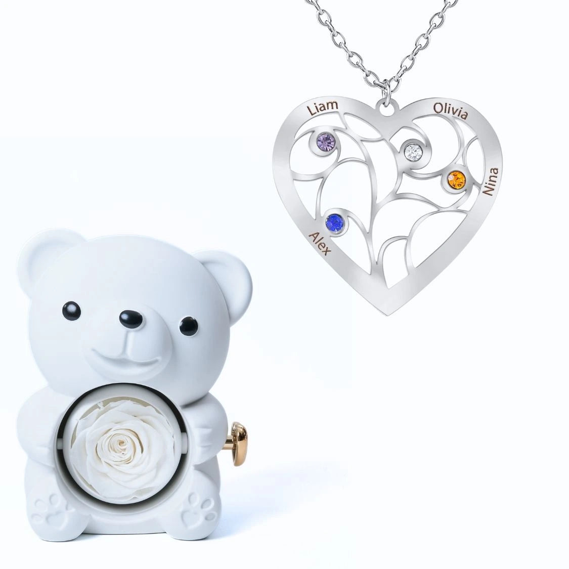 Ours Éternel & Collier Coeur et Pierre de Naissance