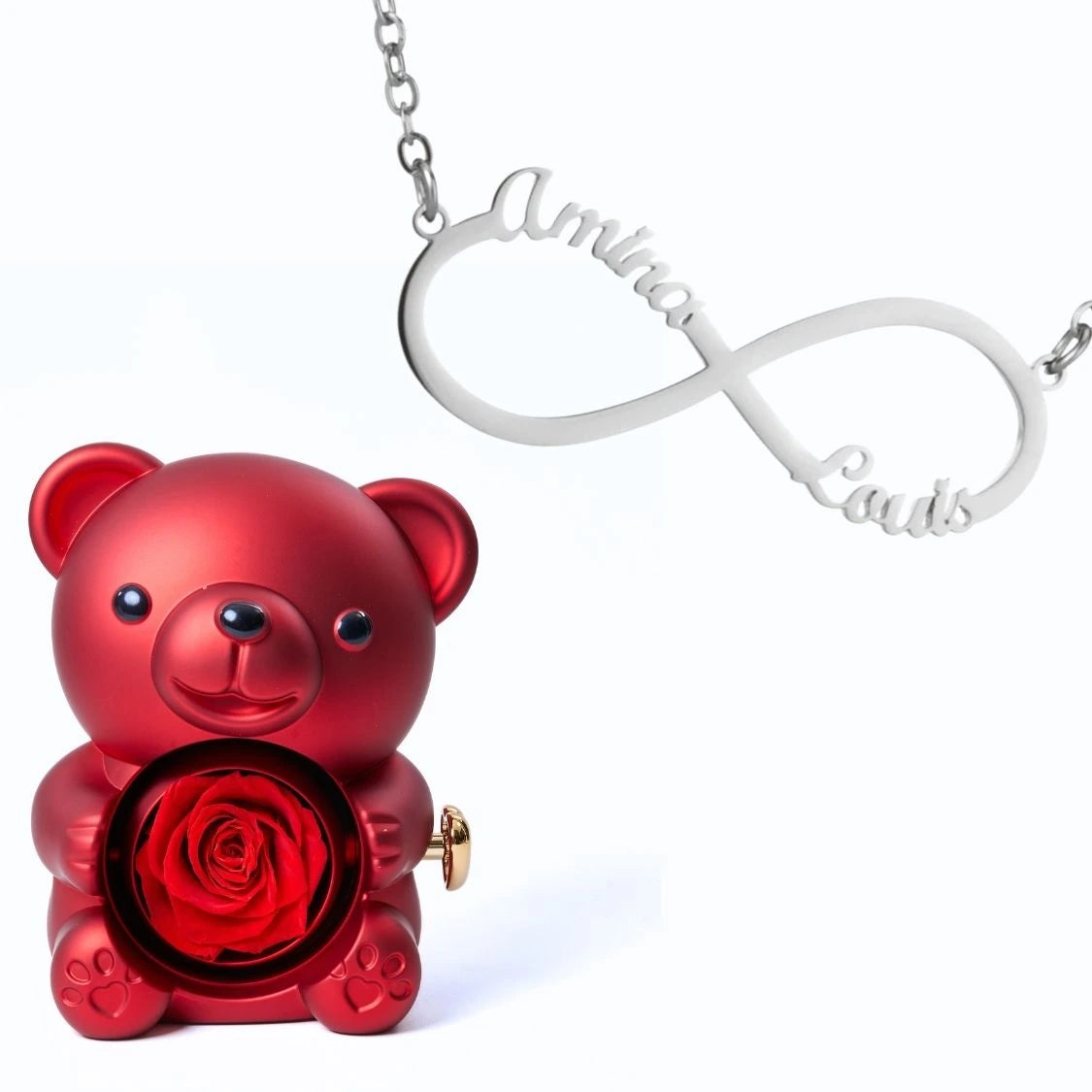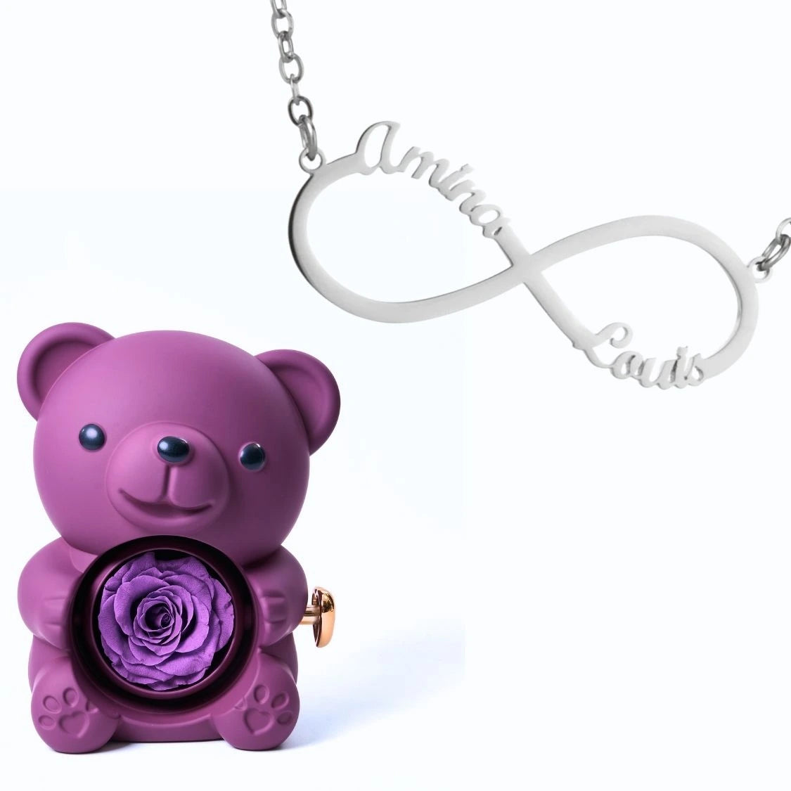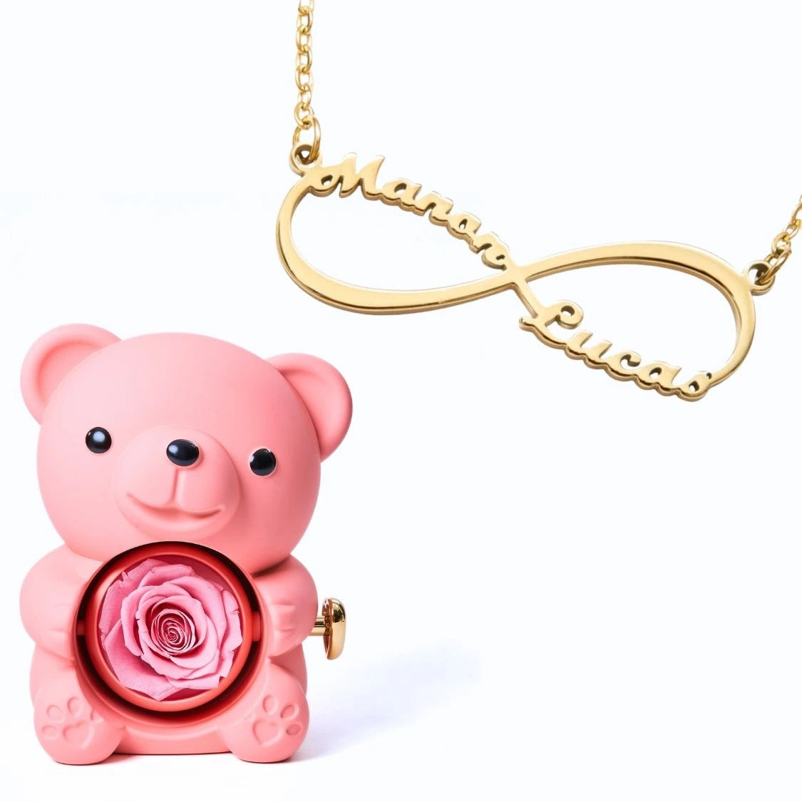 Ours Éternel & Collier Infini Personnalisé Deux Prénoms